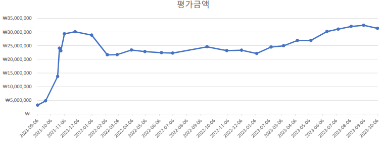 작년에 비해 다소 평가금액이 올랐다. 매월 소액으로 적금처럼 예수금을 투입하긴하지만 그것보다는 나스닥계열 종목들이 사소 상승했기때문이라고 생각된다.